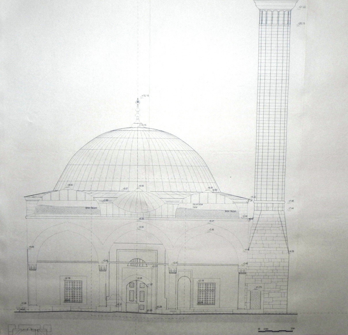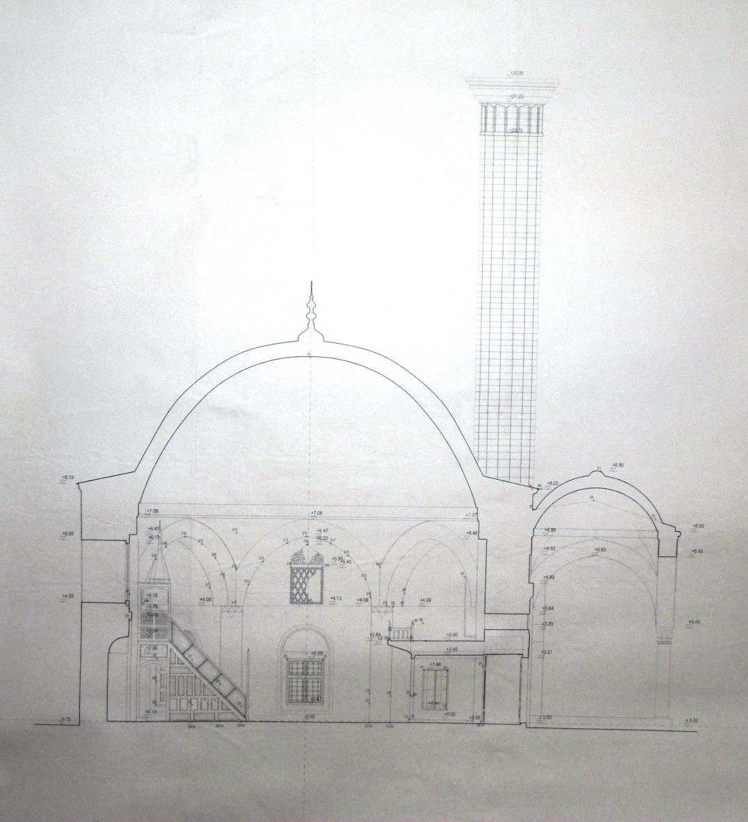 The mosque complex consists of the mosque itself, the minaret, the mejtep, the ablution facility (abdesthana), old graves, and a library, which is one of the oldest libraries in Kosovo. The central point of the ensemble is undoubtedly the mosque building, which occupies the central position within the entire site.